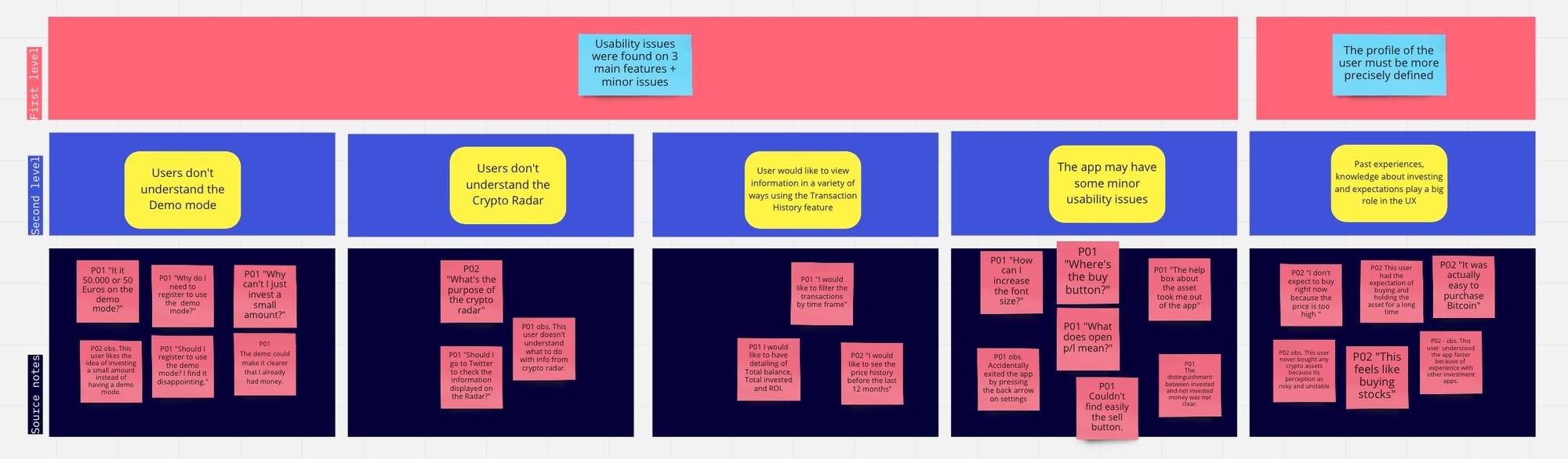 - Creating an Affinity Wall, which is the sorting and clustering of relevant information collected during the interviews.