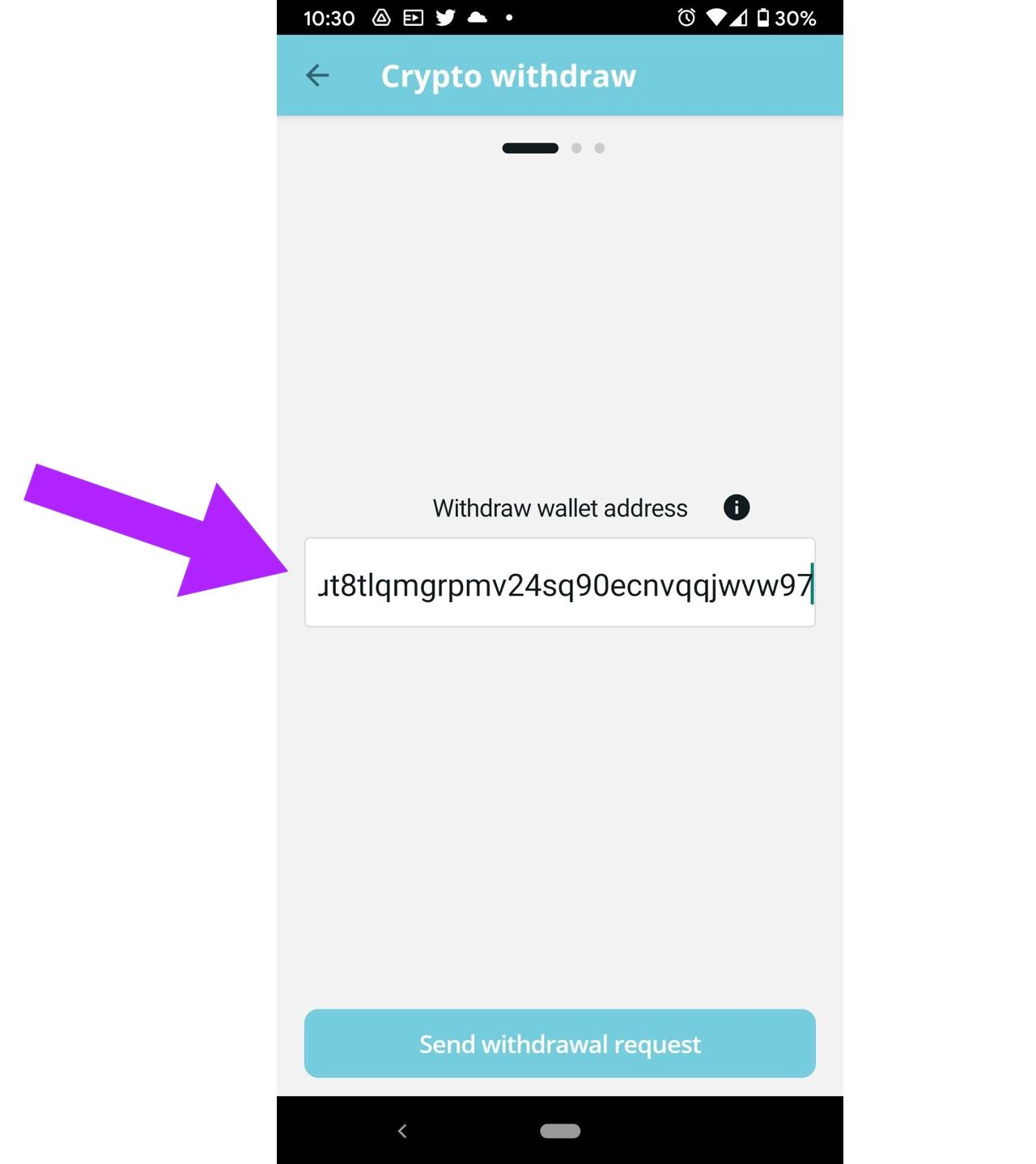 - It should allow the user to verify the completed address, from the beginning to the end. Yes, everyone will be copying and pasting it from somewhere else, but it is crucial to make it possible for the users to check the first and last characters without requiring them to drag the cursor through the field, mostly to avoid possible